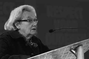 Tijdens een van haar vele lezingen